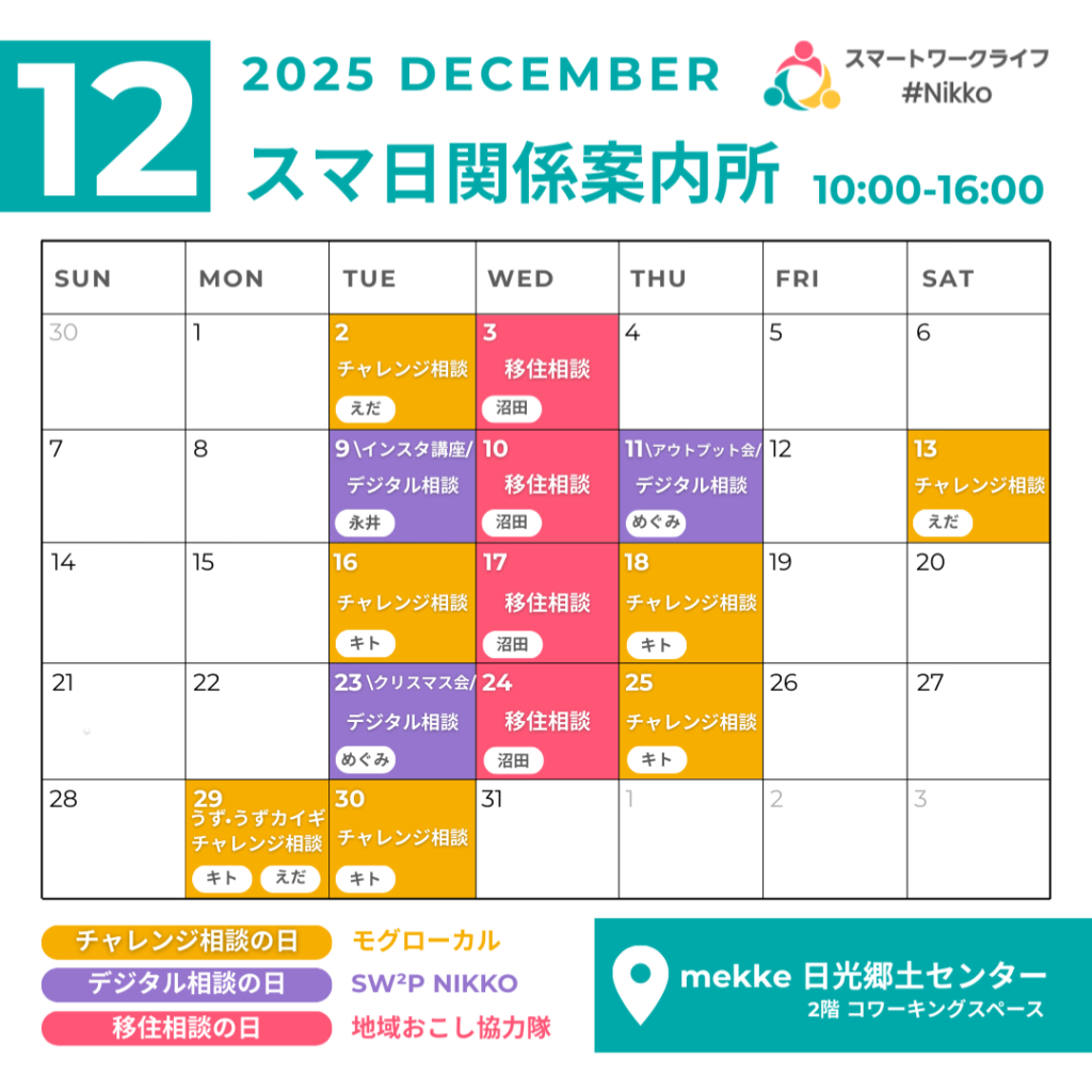 場所:mekke日光郷土センター 2階